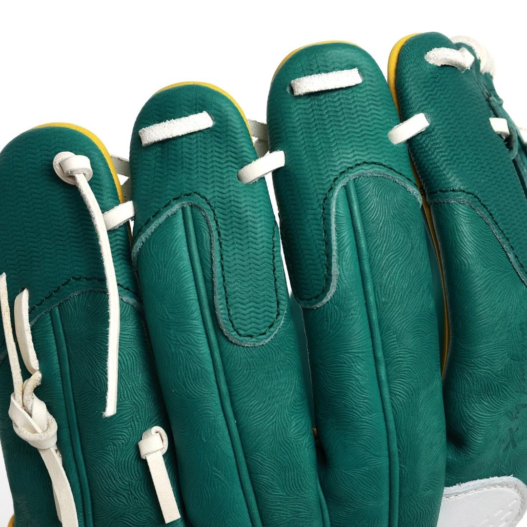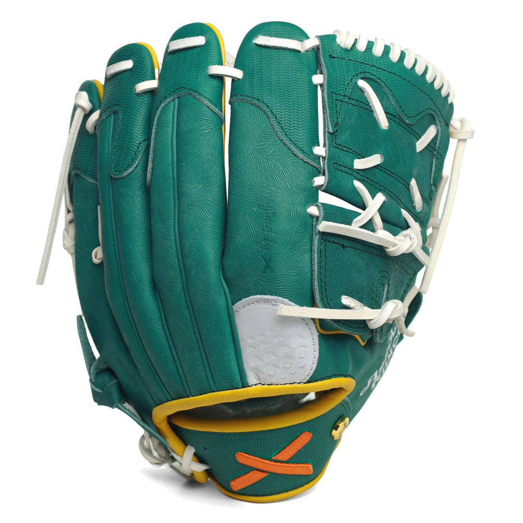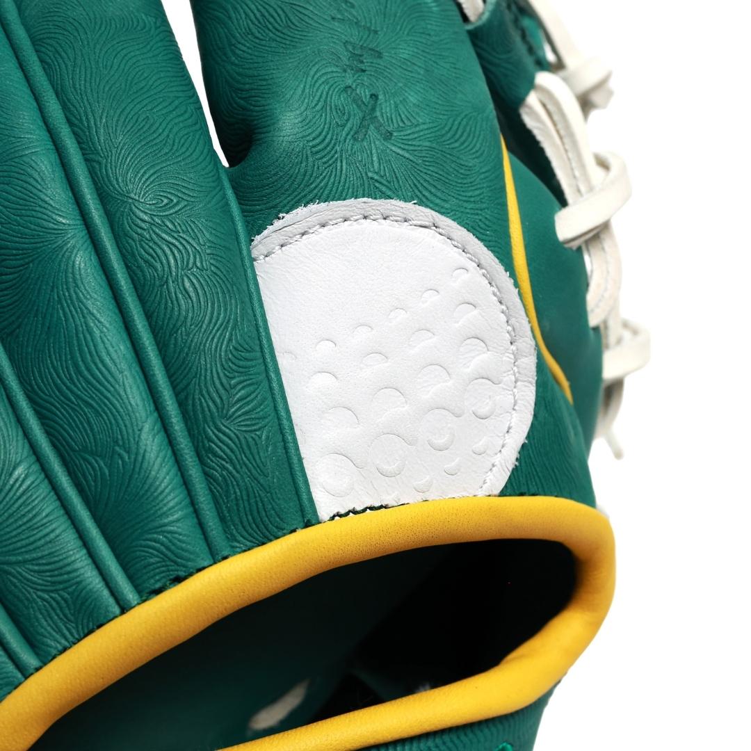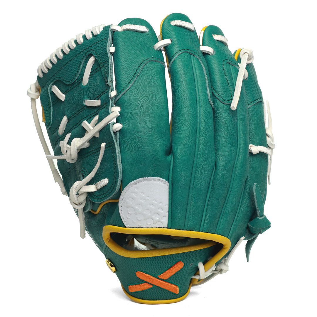 From the freshly cut grass-textured shell, to the champions jacket fabric at the fingertips, each piece is finished with a yellow flagstick at the thumb, a golf ball stitched finger pad, and the signature X logo debossed into the gold jacket button.