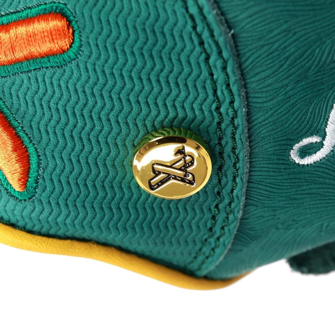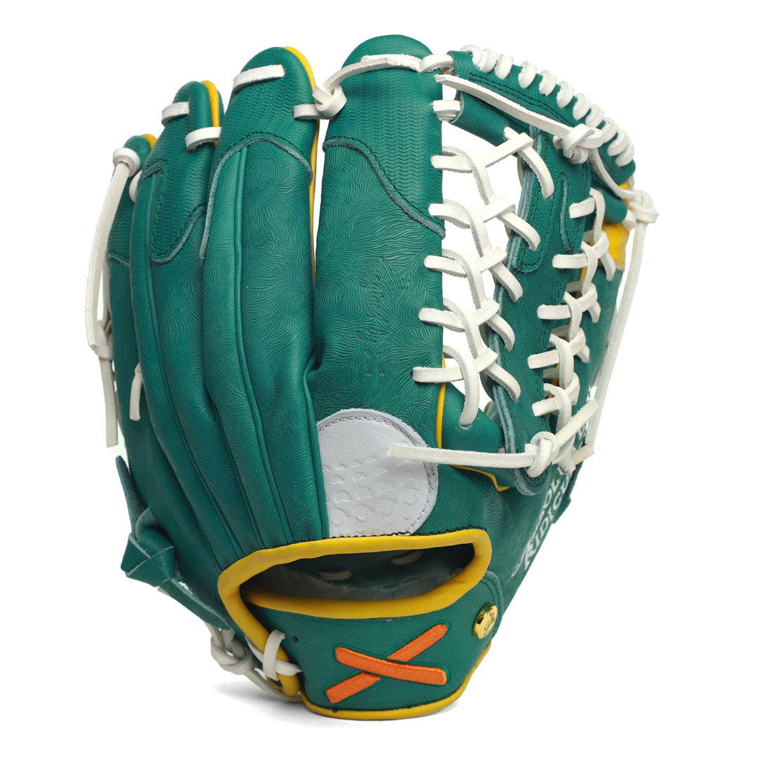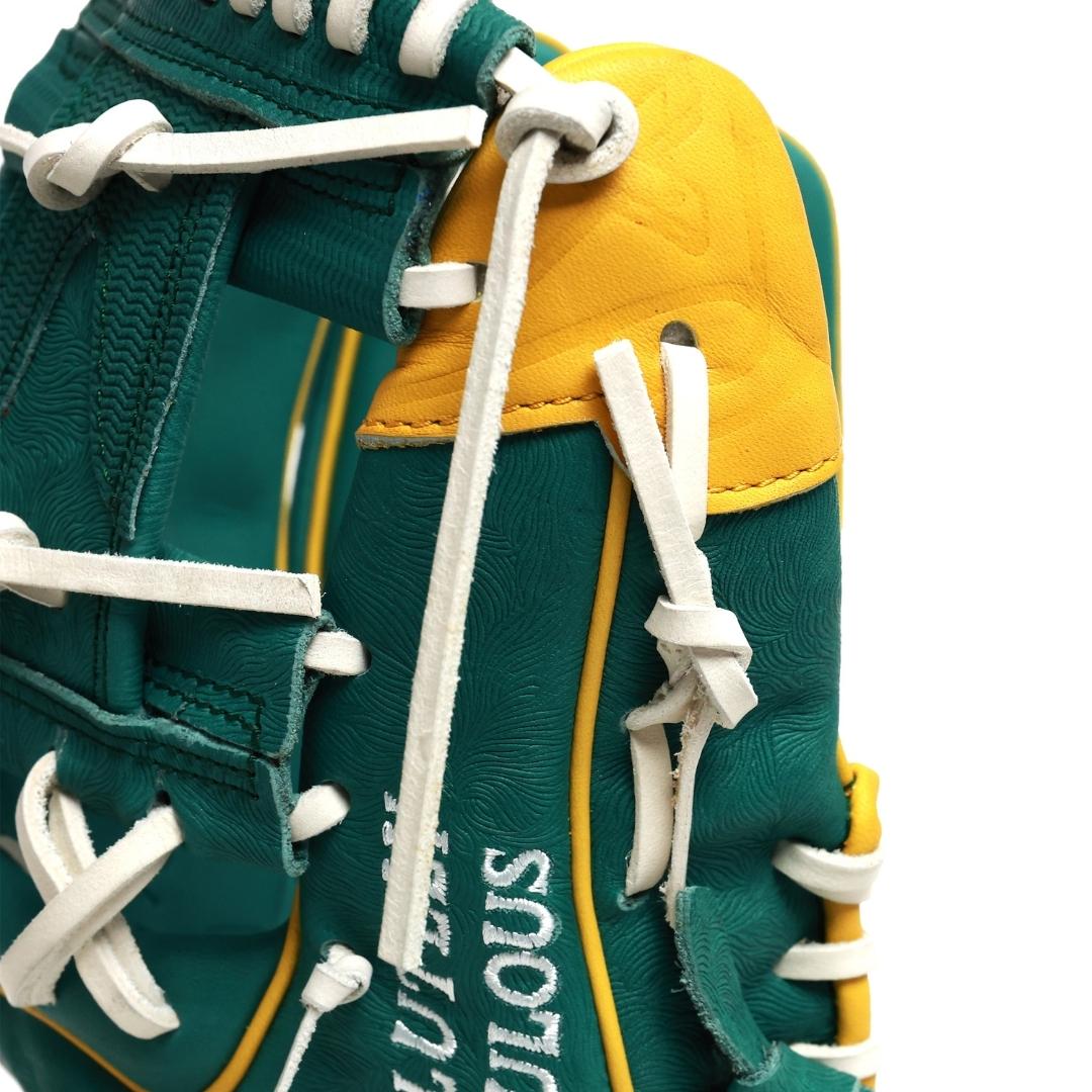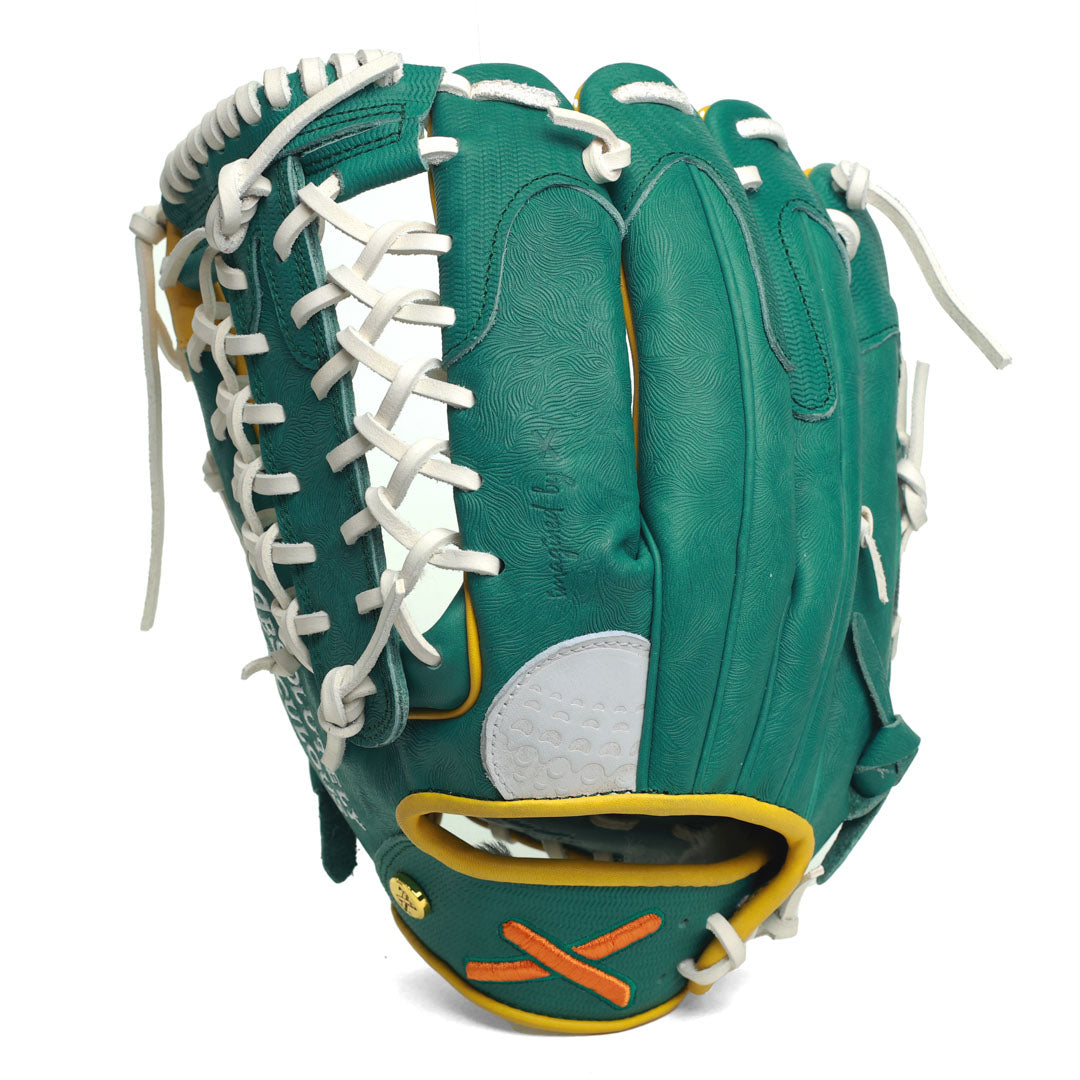 From the freshly cut grass-textured shell, to the champions jacket fabric at the fingertips, each piece is finished with a yellow flagstick at the thumb, a golf ball stitched finger pad, and the signature X logo debossed into the gold jacket button.