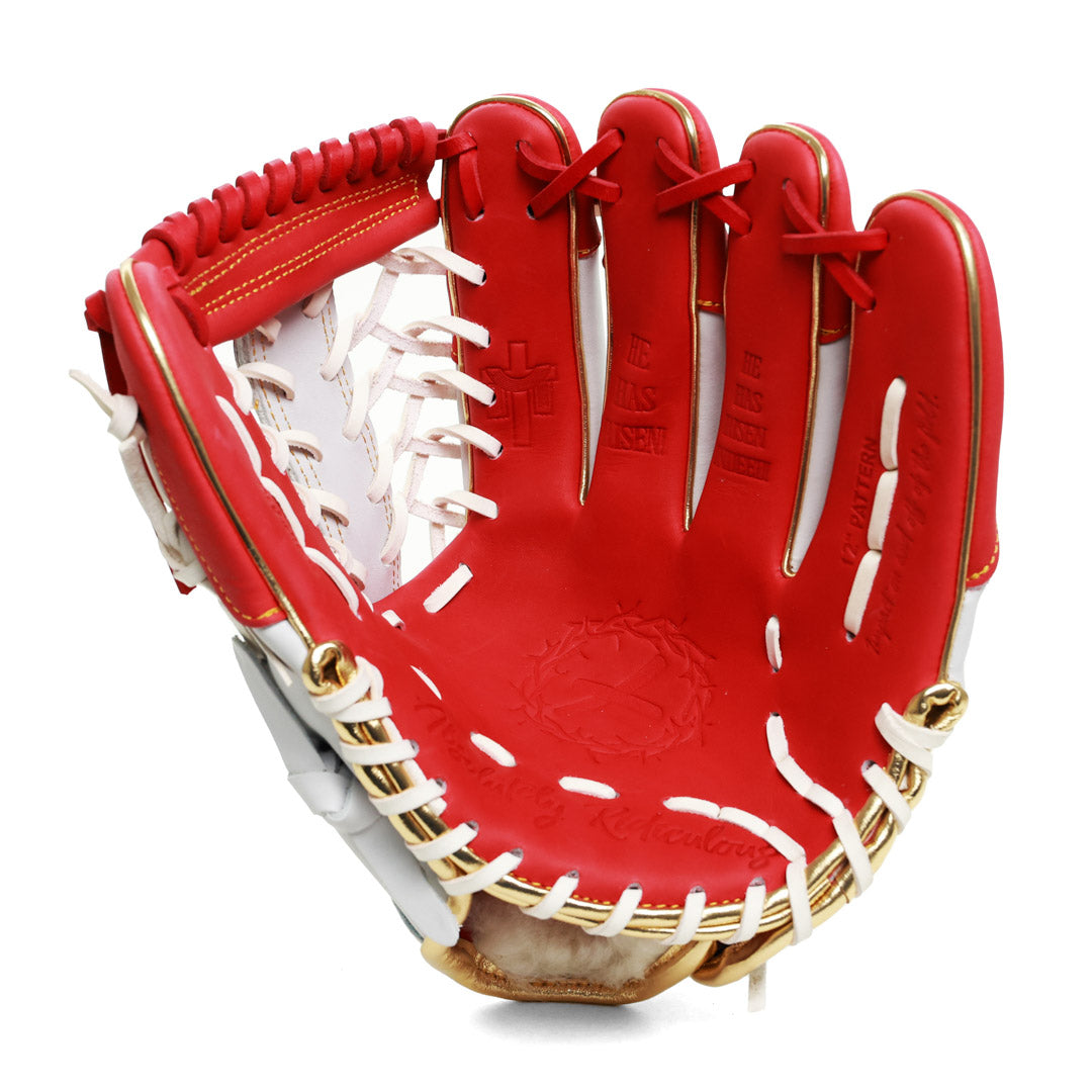 Gold crosses are placed throughout the piece, adding symbolism, while an ornate cross is embossed to the stitching of the finger pad with intricate precision. These serve as a reflection of the eternal beauty born from the sacrifice that was made three days before the Resurrection.