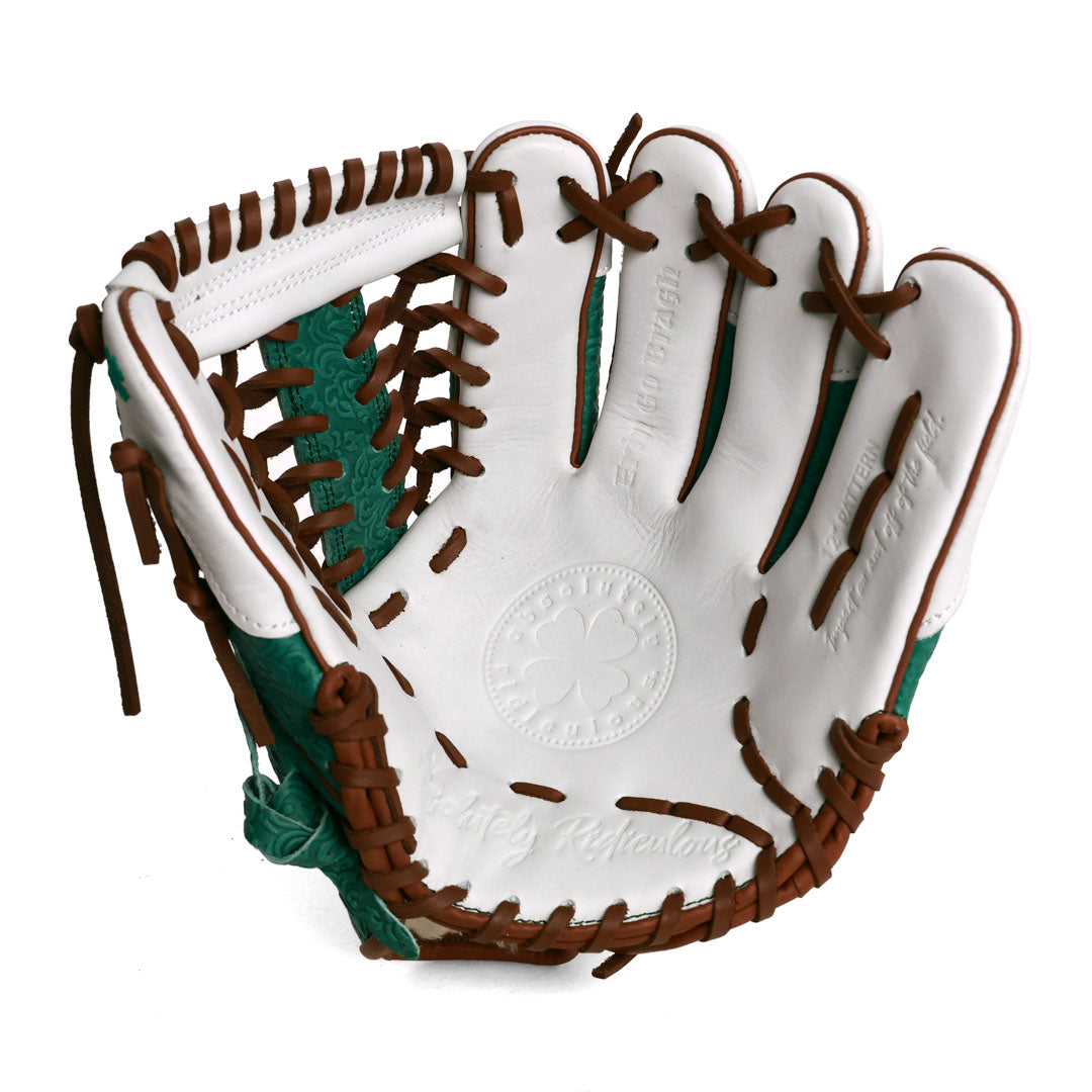 With a shamrock-stitched white leather drip pattern building texture across the exterior, intricate Celtic knotwork is pressed into the emerald green leather shell, reflecting a tradition rooted in history.