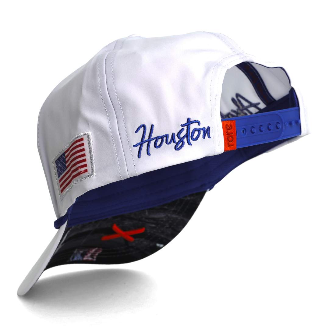 This rare edition hat tells the story of the Apollo 11 mission — with the exact USA flag from Neil Armstrong's suit stitched on the side, and a real photo of the moon landing under the brim.