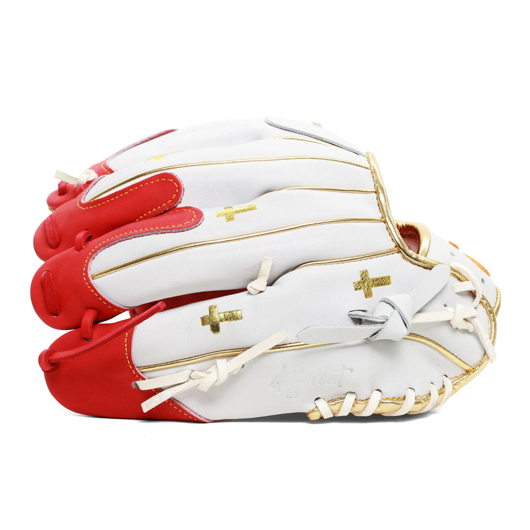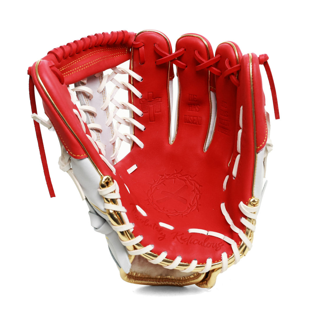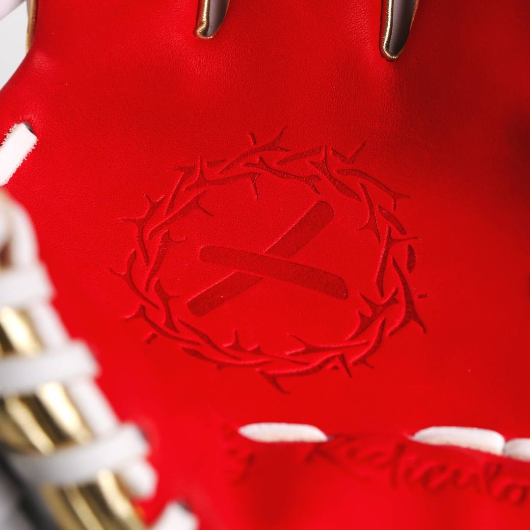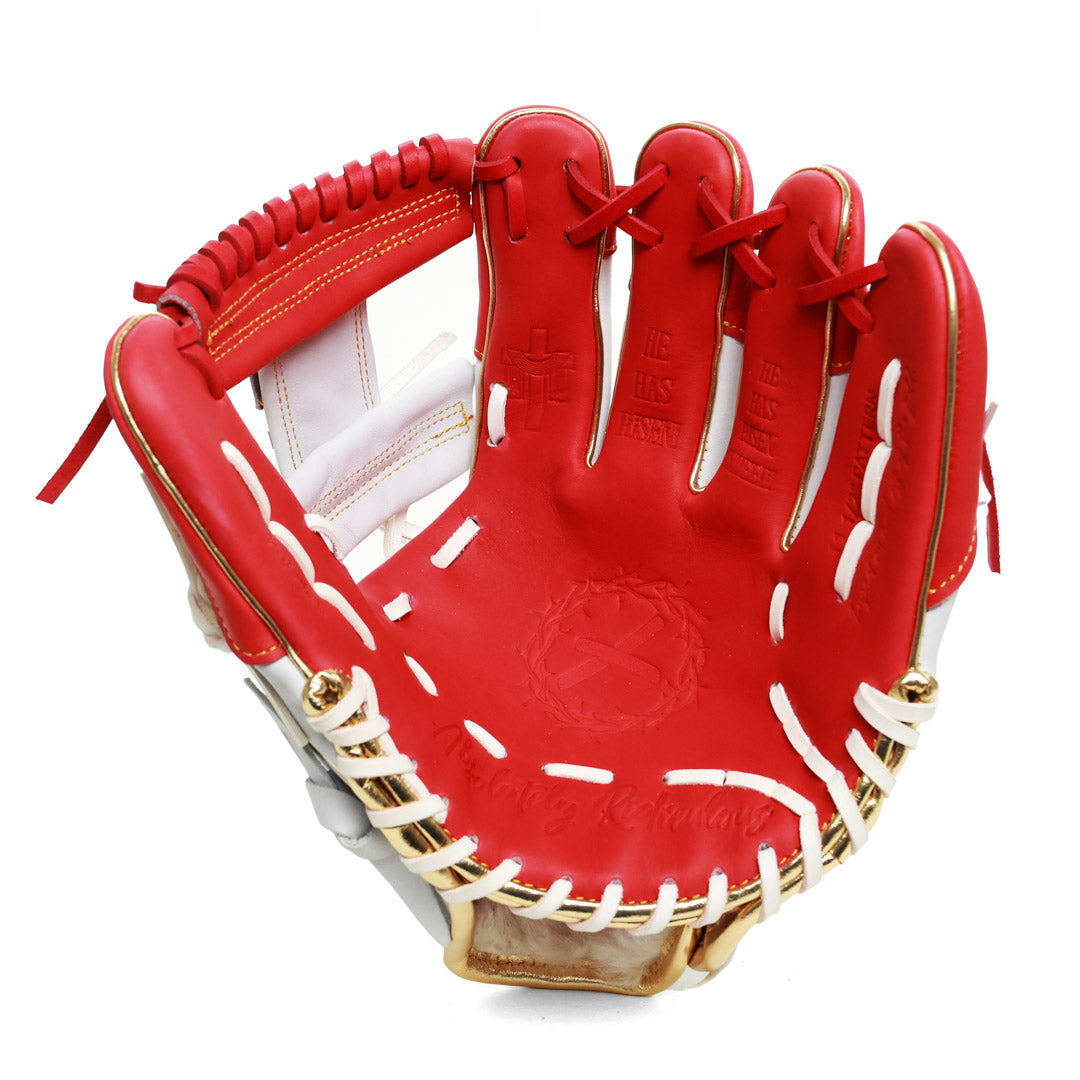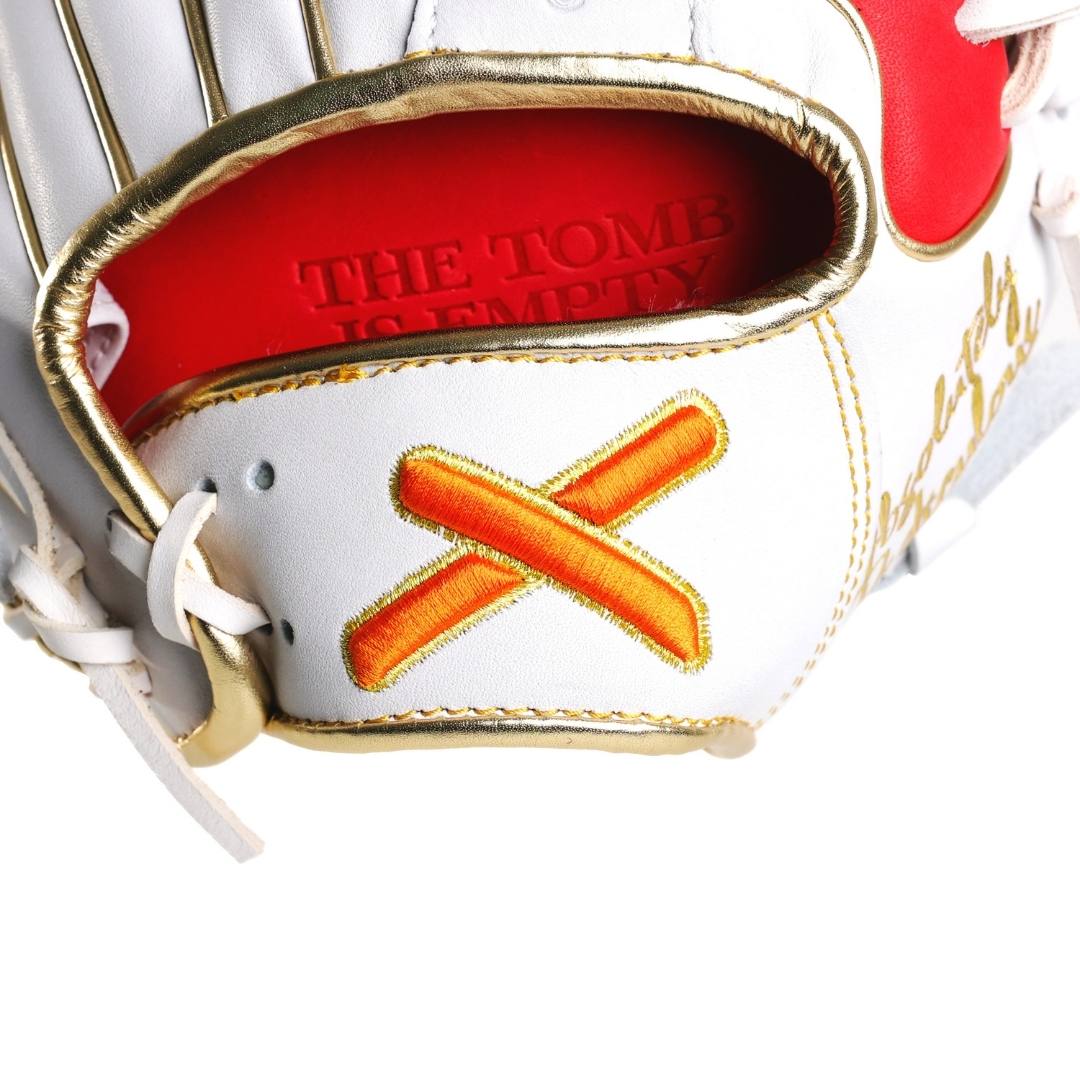 Gold crosses are placed throughout the piece, adding symbolism, while an ornate cross is embossed to the stitching of the finger pad with intricate precision. These serve as a reflection of the eternal beauty born from the sacrifice that was made three days before the Resurrection.