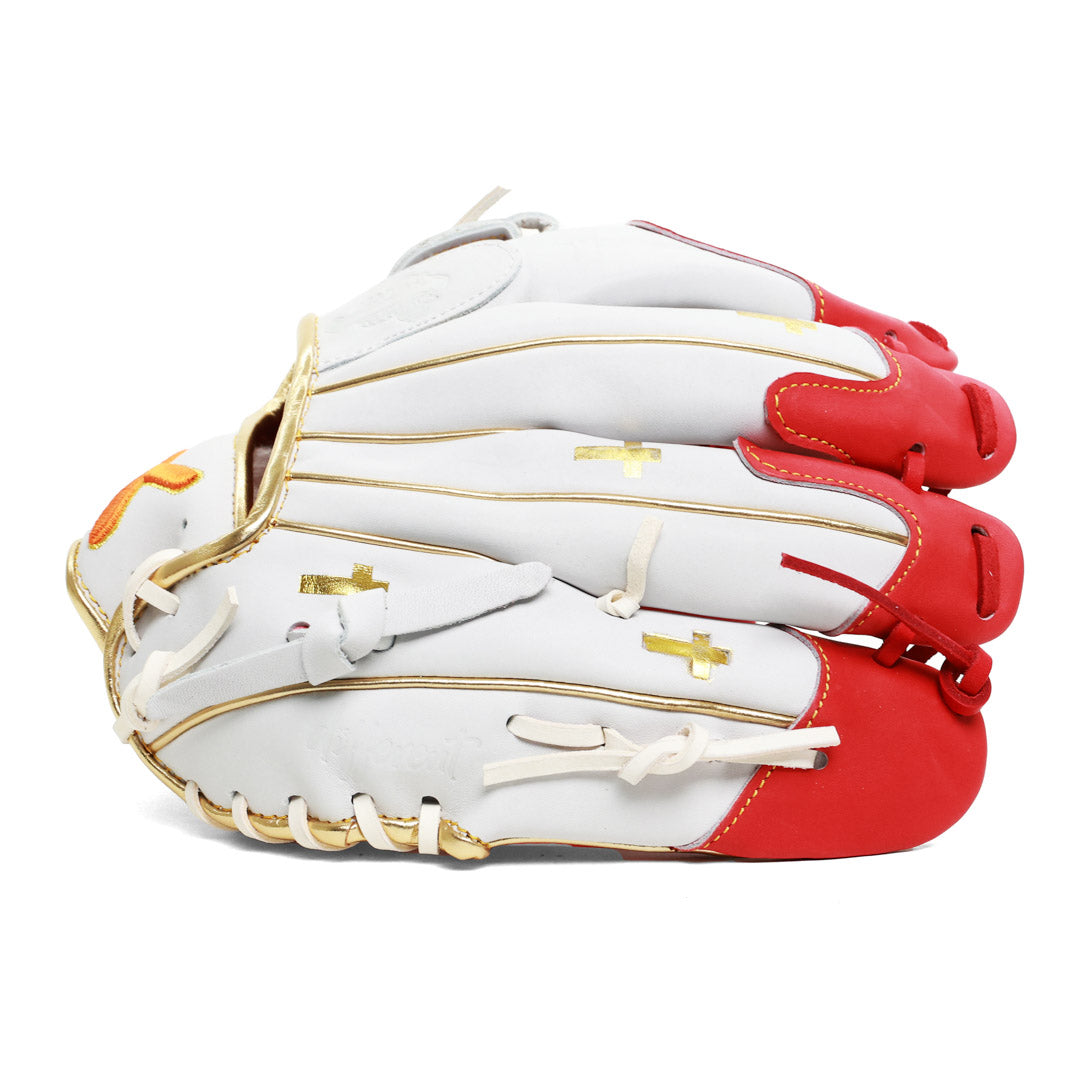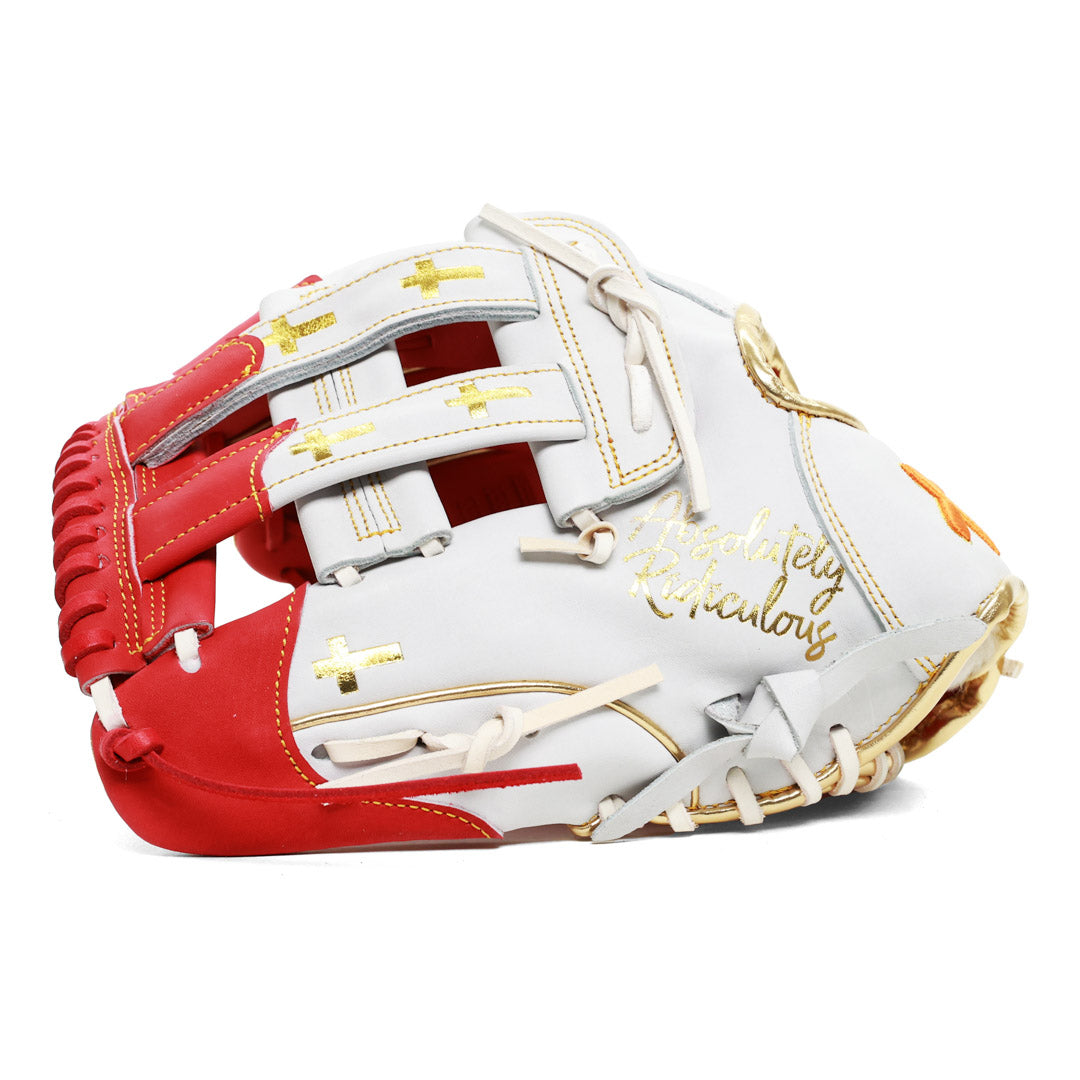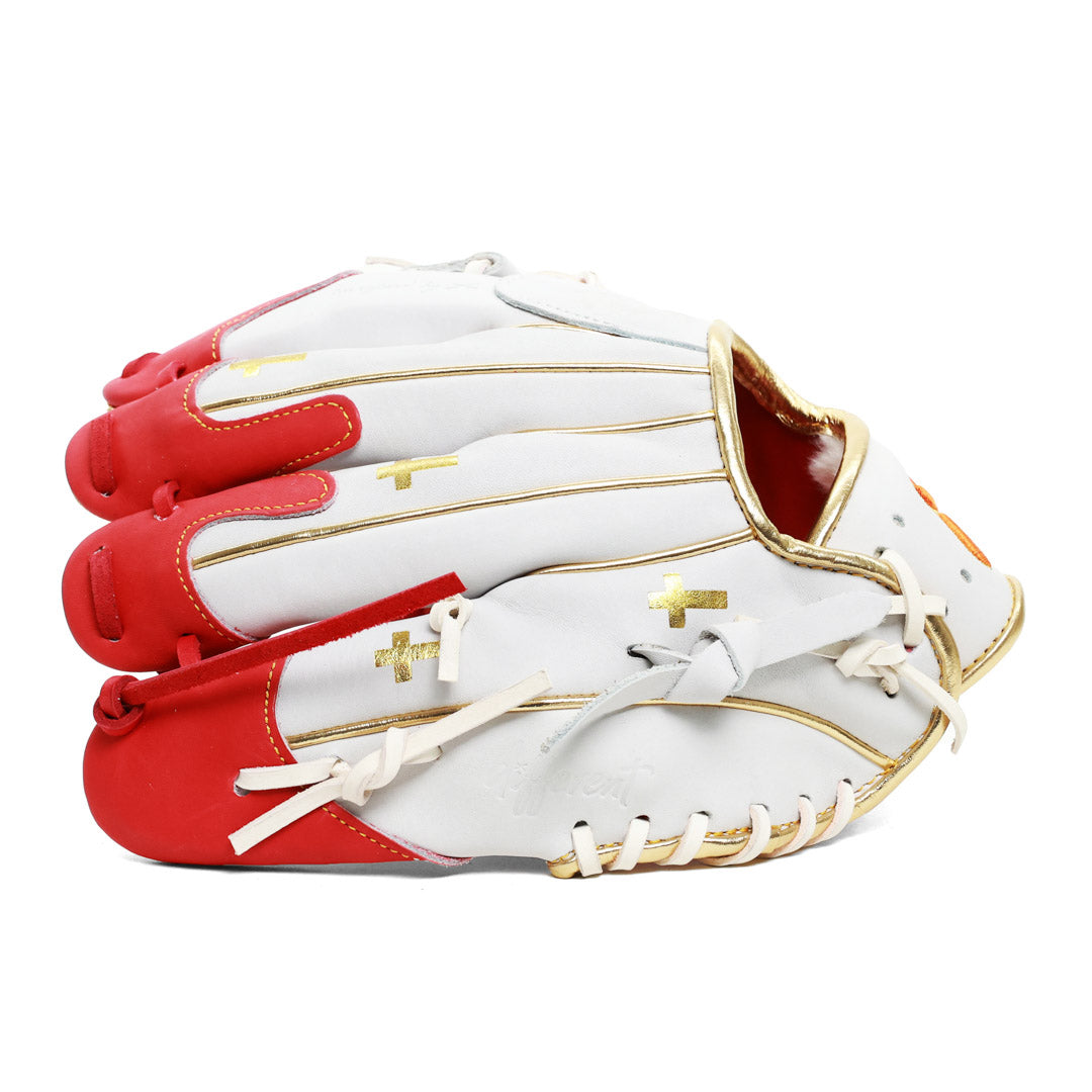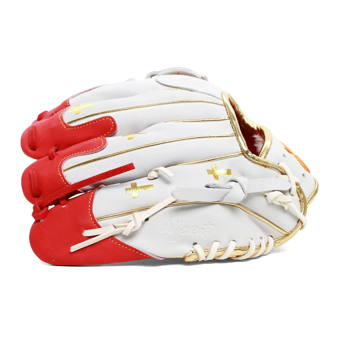 Gold crosses are placed throughout the piece, adding symbolism, while an ornate cross is embossed to the stitching of the finger pad with intricate precision. These serve as a reflection of the eternal beauty born from the sacrifice that was made three days before the Resurrection.