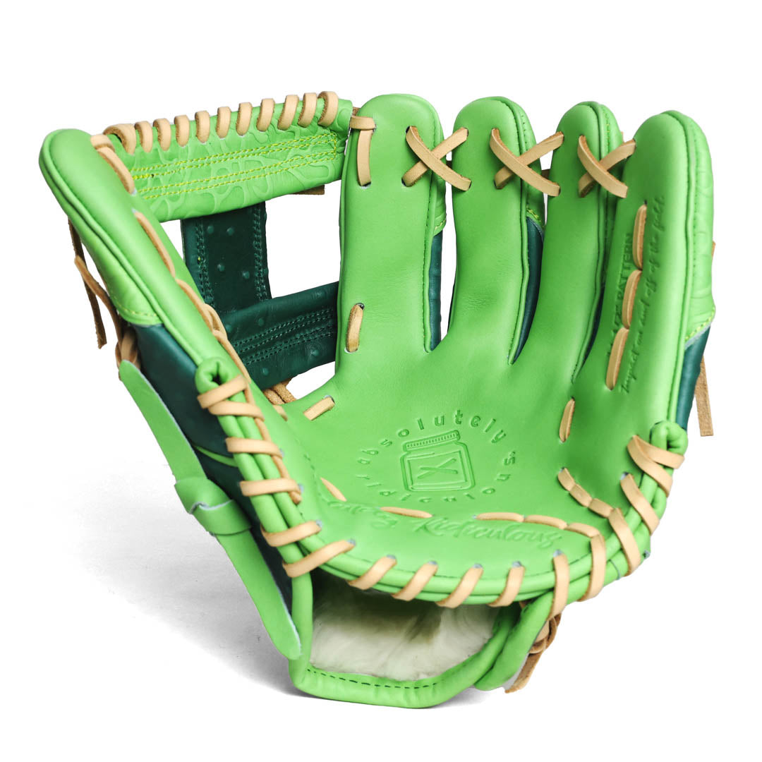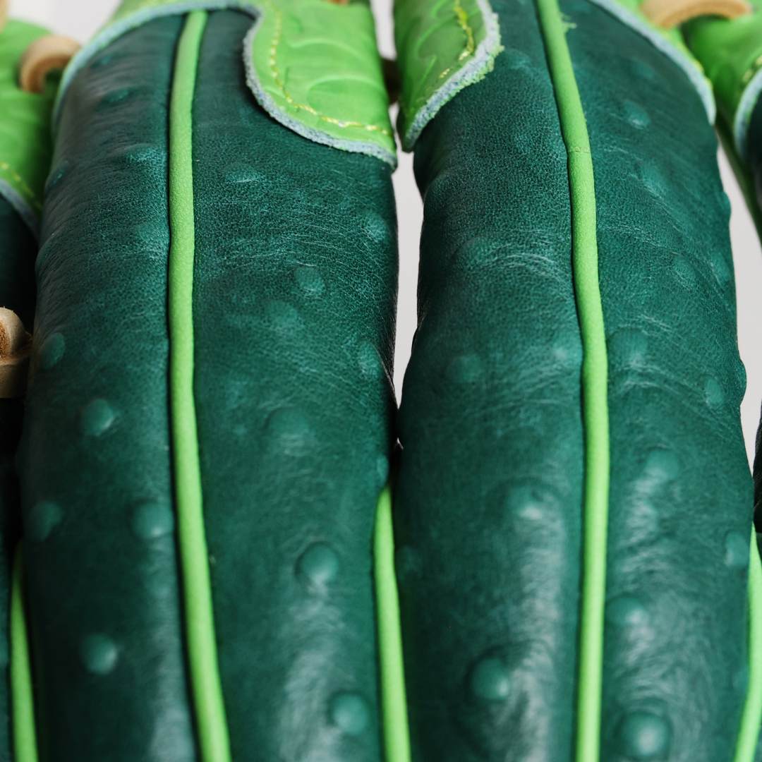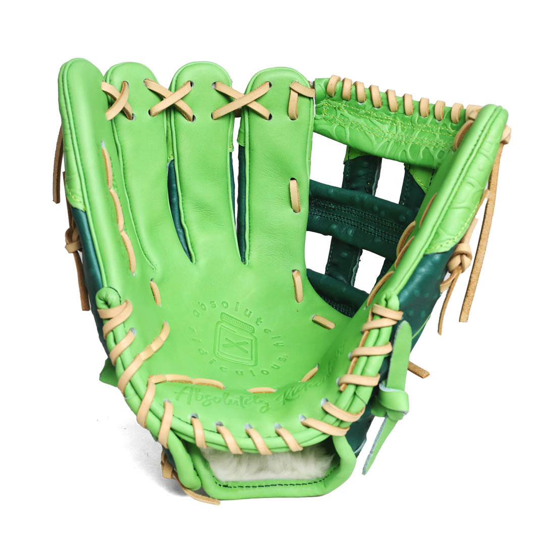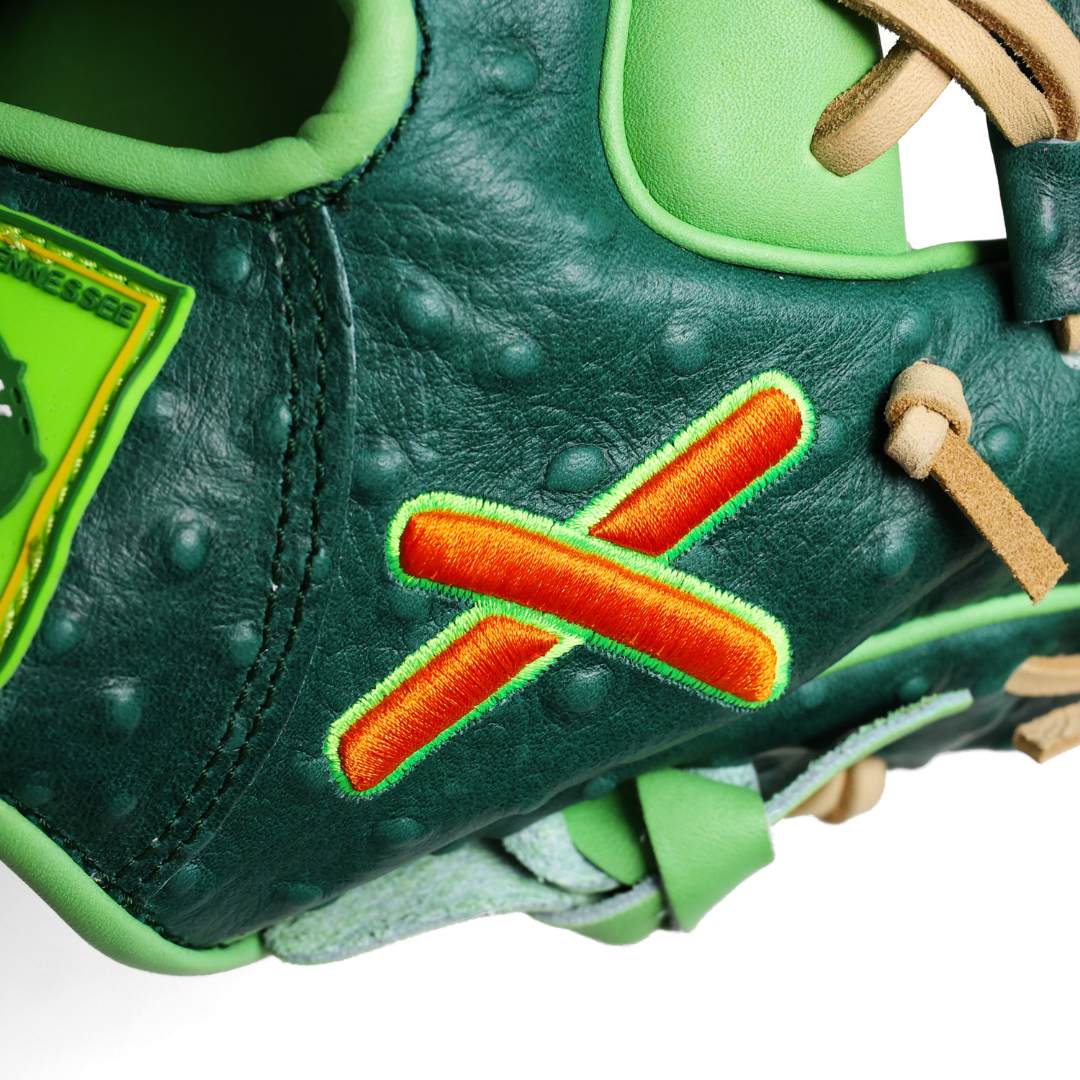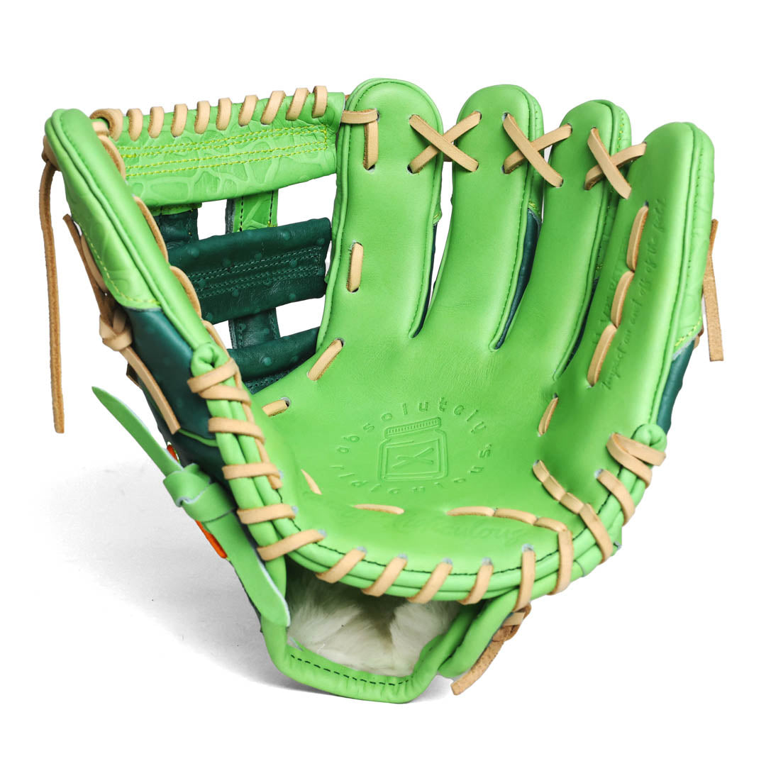 Dressed in deep dill green with crisp accent piping, the Pickle Softball Glove — crafted with high-quality leather features pickle-inspired accents and texture in the detailing.