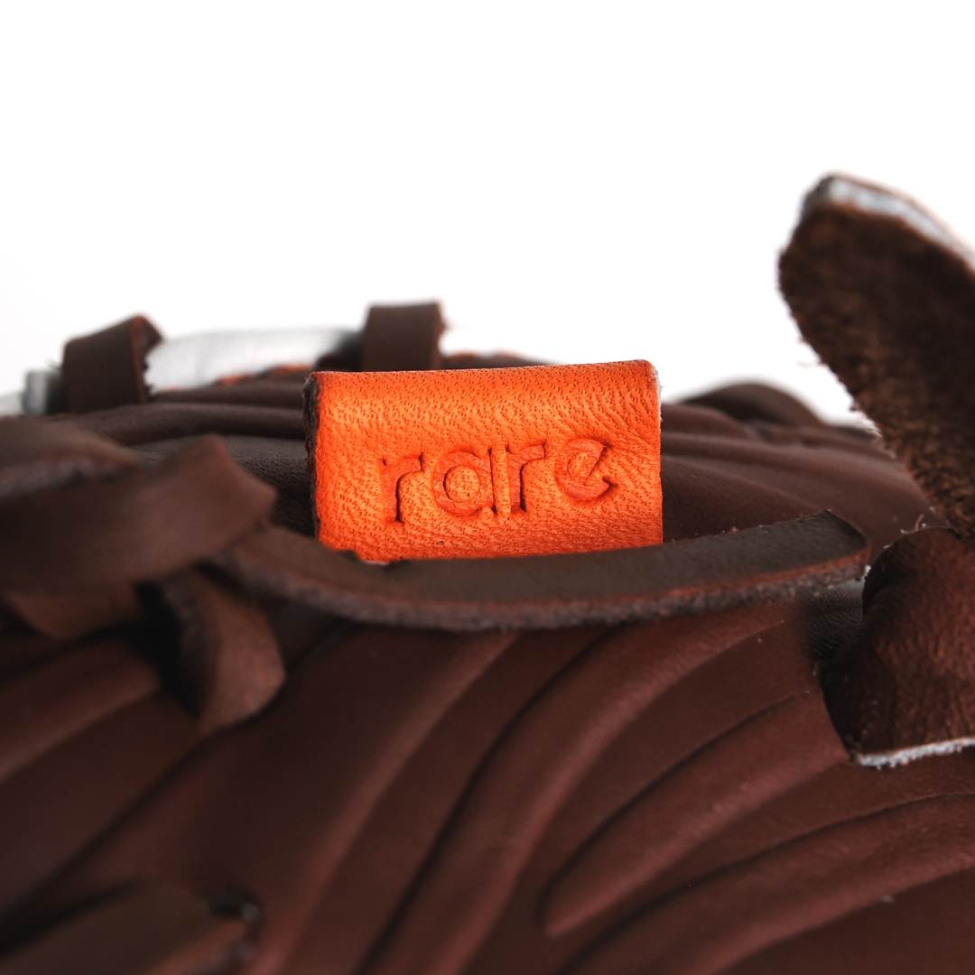 The iconic paw flows across the thumb into a tiger-print debossed texture pressed directly into the orange leather, resembling pride and identity.
