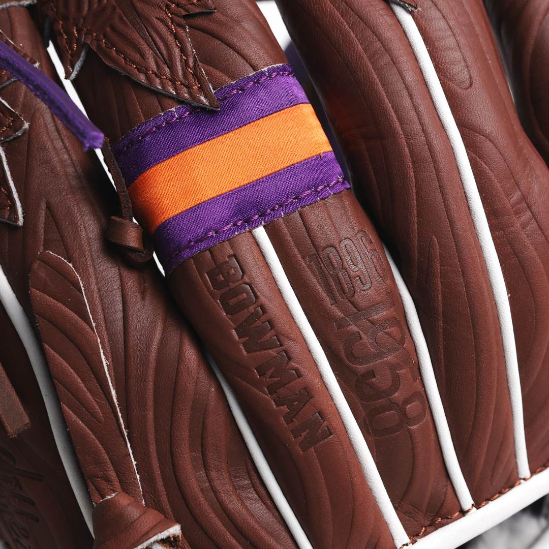 1896 debossed into the leather signifies the beginning of Clemson Baseball, as 1958 commemorates its first College World Series appearance, while "Bowman” sits beside the two historic numbers as a tribute to Clemson’s first baseball coach.