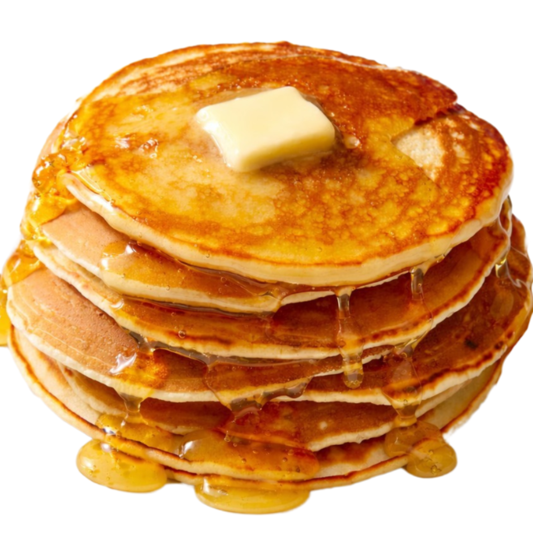 Fresh off the griddle with fresh maple syrup and buttery leather.