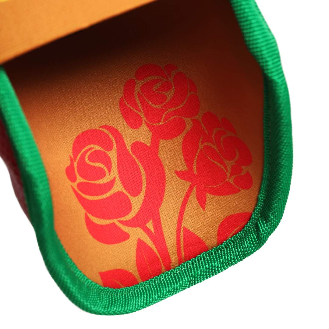 Artistic Design: Bold red rose petal pattern on the outer shell, complemented by detailed rose artwork on the inner lining.